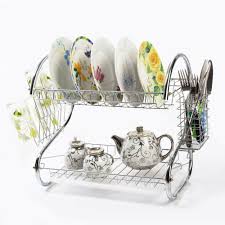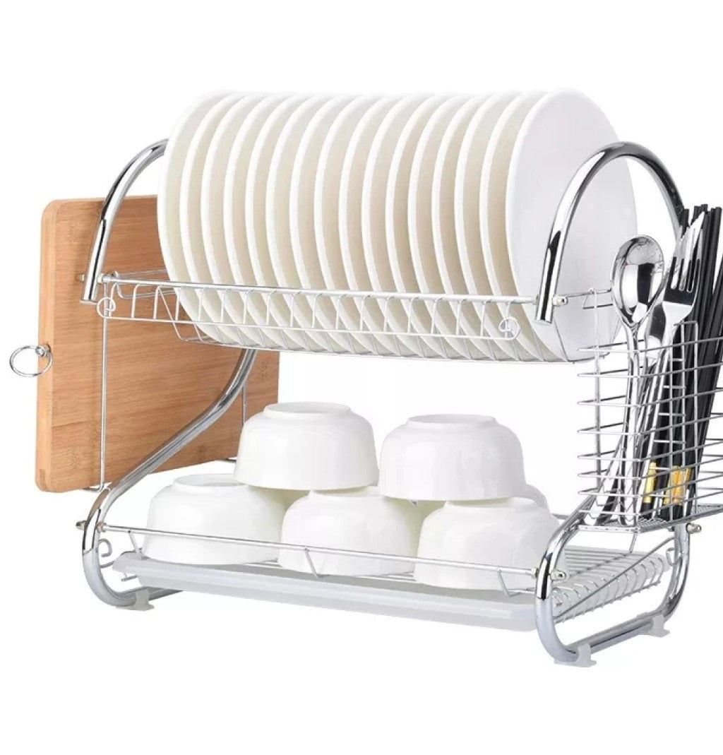 S-Shape Double Decker Style Dish Rack Kitchen Organizer
